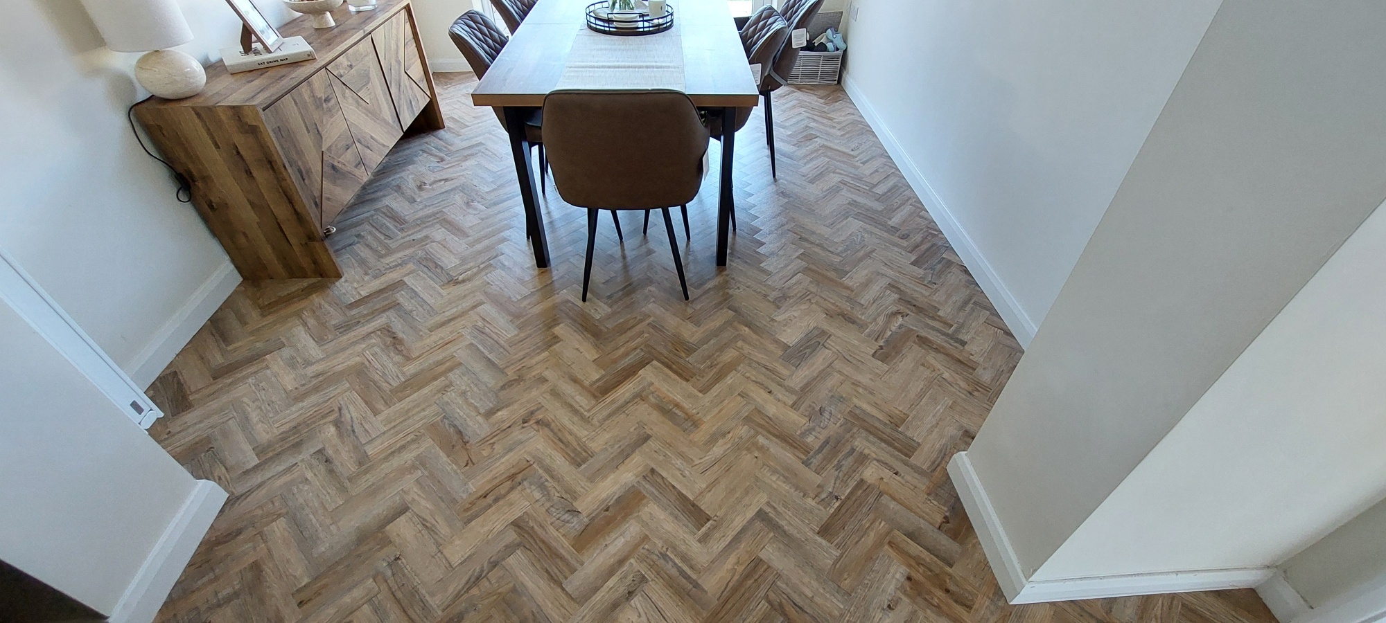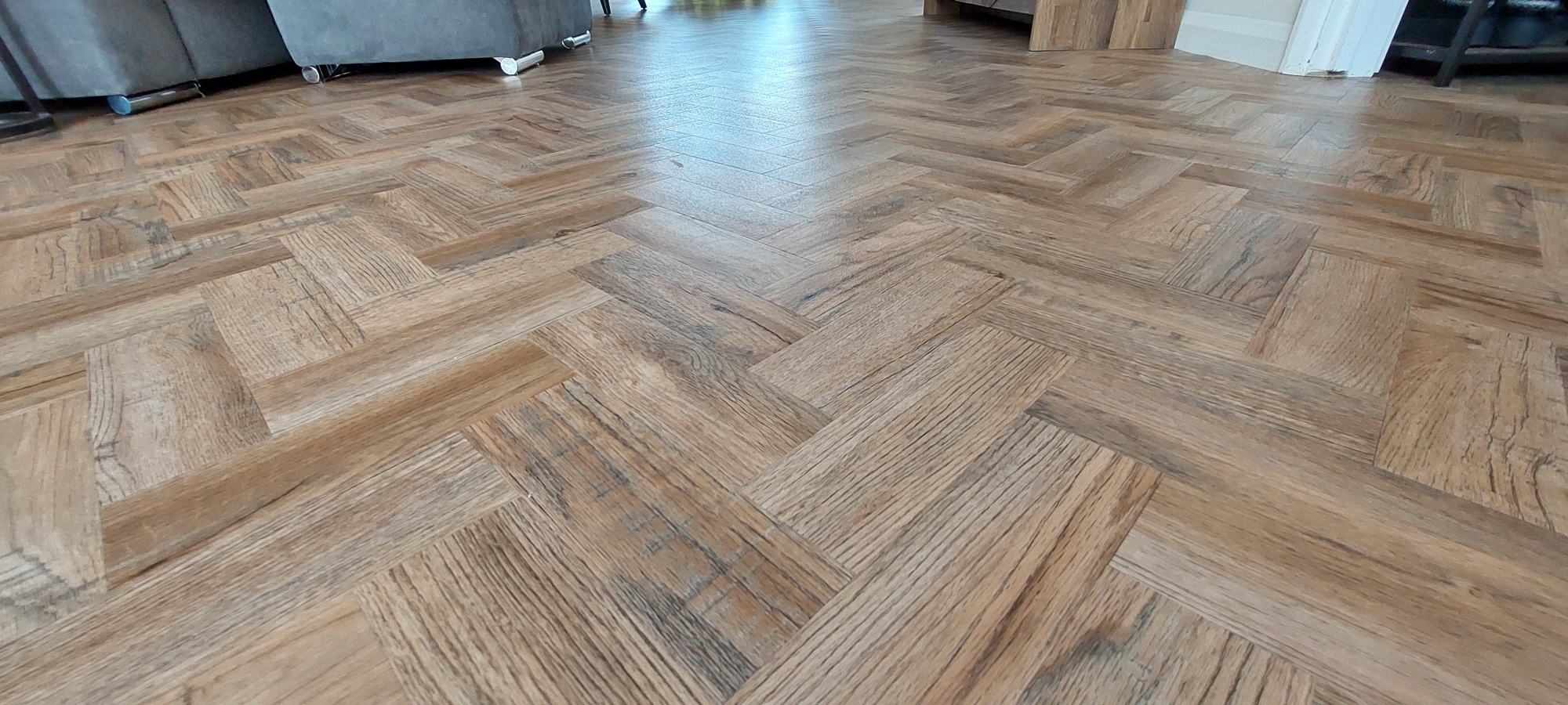 Polyflor Camaro luxury vinyl tiles in colour Cambridge Parquet supplied & fitted to Lounge/Diner & Kitchen. Polyflor Camaro luxury vinyl tiles in colour Cambridge Parquet supplied & fitted to Lounge/Diner & Kitchen.